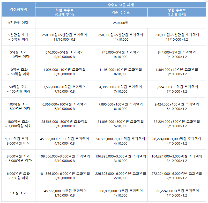 안녕하세요, 박희서 감정평가사입니다.2025년 3월부터 감정평가 수수료가 공식 인상되었습니다. 국토교통부 공고에 따른 새로운 수수료 체계와 감정평가 수수료 계산 방법에 대해 자세히 알아보겠습니다. ▷ 2025년 감정평가 수수료 인상 내용국토교통부 공고(2025-334호, 2025.3.17)에 따른 「감정평가법인등의 보수에 관한 기준」 주요 개정 내용은 다음과 같습니다.감정평가 최저수수료가 기존 20만원에서 → 25만원으로 인상되었습니다. ▷ 감정평가 수수료 요율 체계 ▷ 감정평가 수수료 체계 완전 분석먼저 감정평가 수수료는 법정 수수료로, 정해진 요율표 범위를 벗어날 수 없습니다.수수료 체계에 대해 조금 더 구체적으로 살펴보겠습니다.감정평가 수수료는 아래 3가지로 구성됩니다.1️⃣ 기본 수수료최종 감..